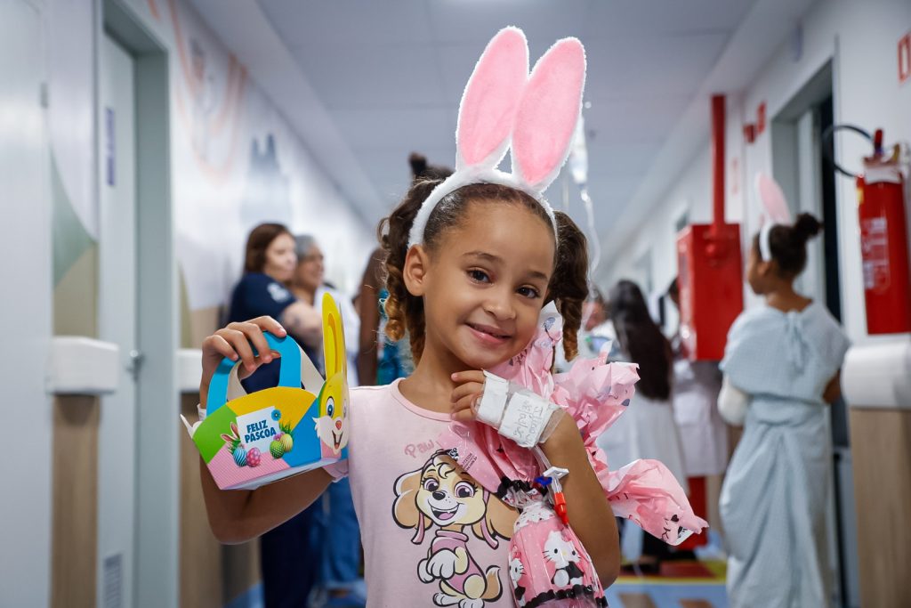 A emoção também foi sentida pelas famílias. Natalia Rodrigues de Paula, vendedora e mãe da pequena Maria Clara, de 6 anos, falou sobre o atendimento no hospital e a visita do Coelhinho da Páscoa: “Foi maravilhoso, como é todo o atendimento aqui. Todo o tratamento da Maria Clara nesses cinco dias foi ótimo. E hoje, com o Coelhinho da Páscoa, ficou ainda mais especial, o sonho de toda criança!”
