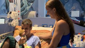 O paciente Brayan, sua mãe e seu boneco de propósito