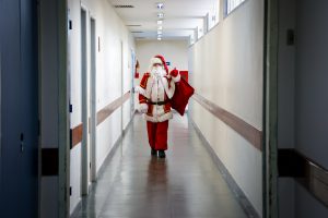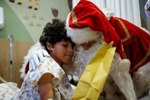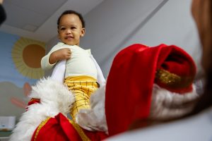 Bom Velhinho distribuiu presentes e abraços a crianças internadas. Crédito: Edu Kapps / SMS