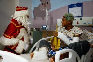 Para Mariana Goes, mãe da pequena Manuela, de 8 anos, a vista do Papai Noel foi um momento de alegria e descontração em meio aos desafios da internação. “As crianças se sentiram especiais e acolhidas. Estão aqui vivendo um momento difícil e a vinda do Papai Noel alegrou elas. Manuela vai ter para sempre essa memória feliz, mesmo tendo vivido um momento tão difícil”, diz a mãe.