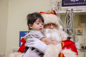 Os pequenos receberam presentes, além de um abraço apertado da figura mais emblemática do Natal. Os responsáveis pelas crianças internadas se sentiram acolhidos ao ouvirem mensagens de amor e esperança do Bom Velhinho. O diretor da unidade, Cristiano Chame, explica que a visita gera mais alegria para quem está se recuperando no hospital.